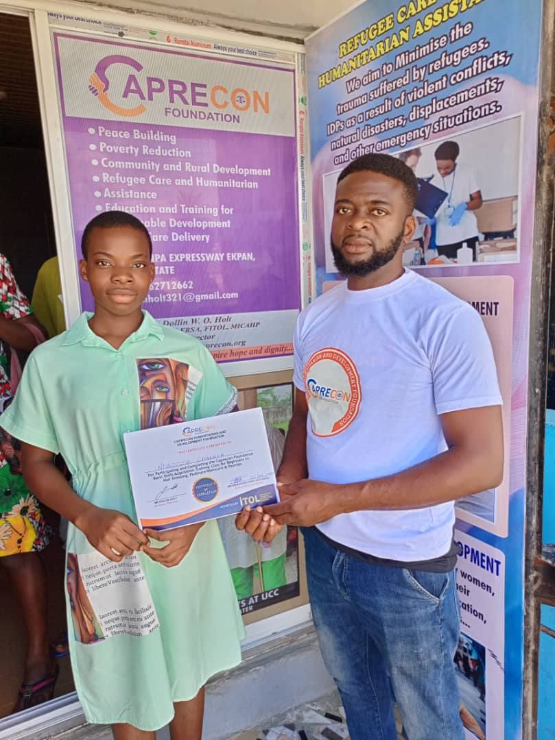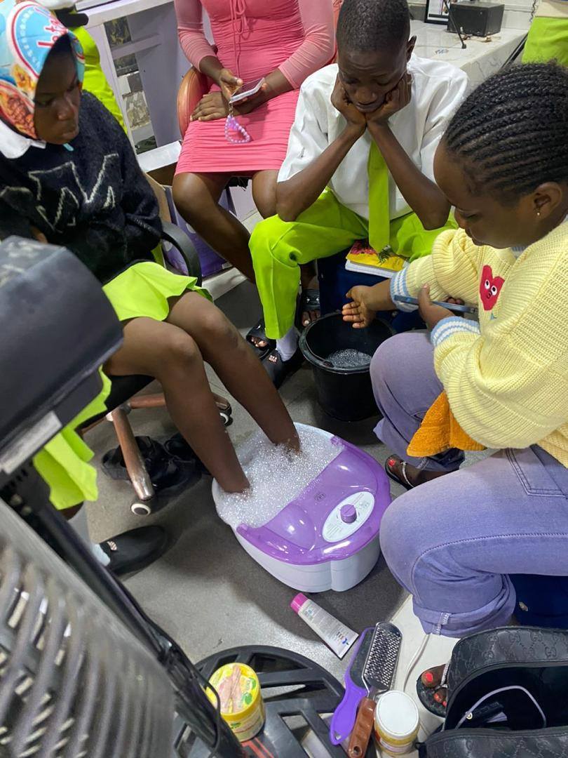- When we provided a beginner’s skills acquisition training programme in hair and beauty treatment and food making, namely: Hairdressing, Pedicure and Manicure, and Pastries.